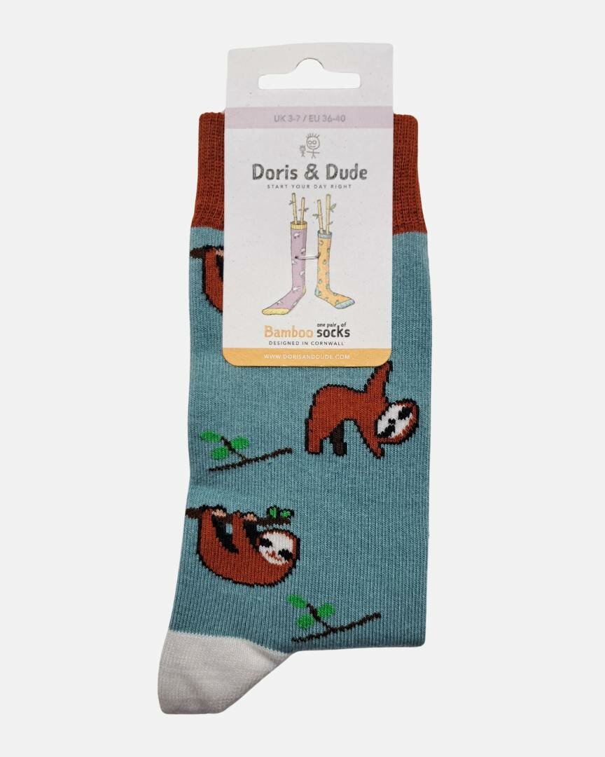 - Dames Doris & Dude bamboe damessokken luiaards mintblauw
